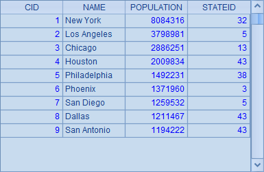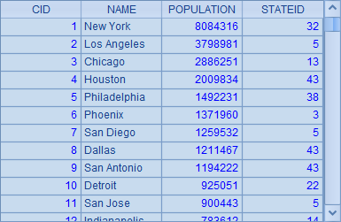 其中ID为主键,特别的,POPULATION设定了限制,要求其中的数据>1,000,000。