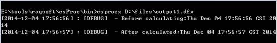 如果esprocx文件所在路径被设入了操作系统的path列表,可以直接运行esprocx,而不必在安装目录的esProc\bin路径下。但是,调用的dfx文件必须指明全路径,或者要位于当前路径中,如: