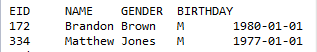 这个网格文件包含一个参数,因此调用时使用"call createTable2(?)",其中的 ? 代表需要输入的参数。在这种情况下需要用st.setObject() 方法输入参数。输入参数时,将按次序设入参数,而与网格中参数的名称无关。网格文件将根据输入的日期列出生日与之在同一天的员工,需要注意的是在Calendar类中设置日期时,月份是从0开始的。结果集输出如下: