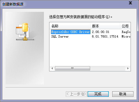 驱动程序安装成功后,可以添加对应的ODBC数据源,选择EsprocOdbc ODBC Driver,准备连接集算器ODBC服务作为数据源使用:
