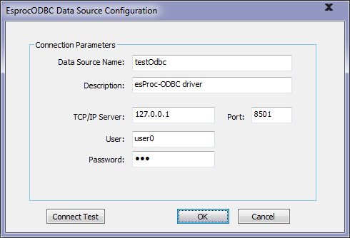 在弹出的配置窗口中,配置集算器ODBC的连接参数,如: