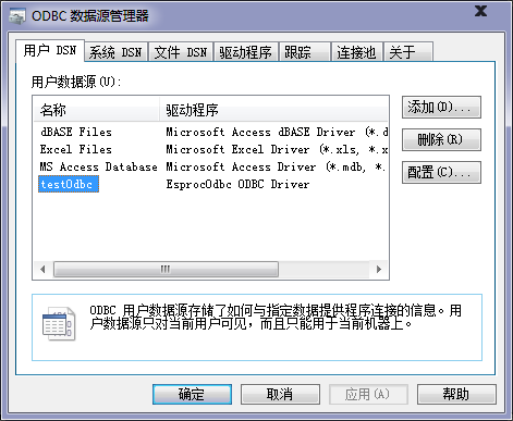 点击确定后,即可在系统的ODBC数据源中看到新建的esProc-ODBC数据源: