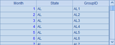 A4中根据月份及州的简称创建序表,A5填入数据后,A4中序表如下: