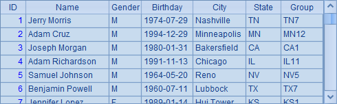 在A6中,通过连接的方式,在游标A2中添加字段,添加时,用A2游标中的员工生日月份及State,和序表A4中的Month及State做等值连接,连接后,取出A4x序表中的GroupID字段添加到结果中的State字段中。从A7中读取前100条结果如下: