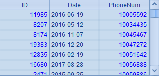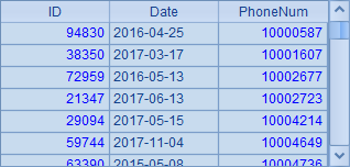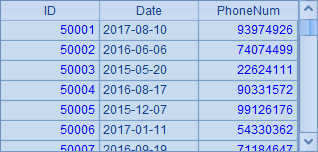 首先,我们先来准备一个大数据表,其中随机生成日期和电话号码,其中日期和电话号码随机生成,电话号码固定为8位数字组成,首尾号码不为0。为方便起见,大数据表存储为集文件。