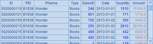 在集算器中,可以使用cs.fetch(;x)或cs.skip(;x)来获取或跳过记录,直到表达式x的值变化,以此来获取连续的一组数据。如,每次取出一个产品,准备考察每种产品的销售信息: