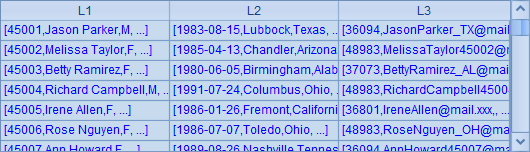 在A1中,将文本文件读为游标。在A2中每次读取5000*3条记录,并在语句块中将数据合并。其中,在每3条记录中,B2取出第1条记录构成排列,C2取出第2条记录构成排列,D2取出第3条记录构成排列。B2,C2和D2在最后一次循环中获取的数据分别如下:
