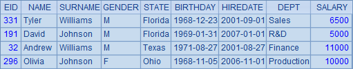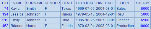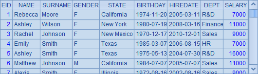 在A1中,从数据库中读出EMPLOYEE表中的数据: