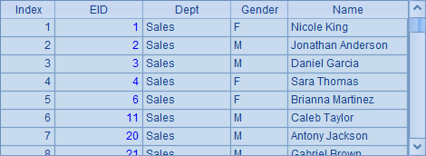 =demo.query("select NAME, SURNAME, GENDER from employee") |