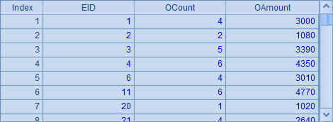 =A10.groups(EID;count(~):OCount, sum(Amount):OAmount) |