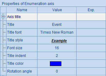 设定横轴的标题文字为Event,并选择了Title font,修改了Title style和Title color;设定Title indent属性可以调整标题文字距离刻度标签之间的距离;还可以设定Font size来调整标题文字的字号,或者设定Rotation angle来设定标题文字的倾斜角度。修改设定后,绘图如下: