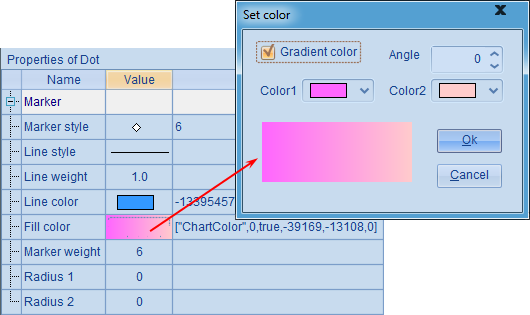 设定Marker style为菱形,Line color改为浅蓝色,Marker weight增大为6个像素,并将点的Fill color改为渐进的粉红色。修改设定后,绘图如下: