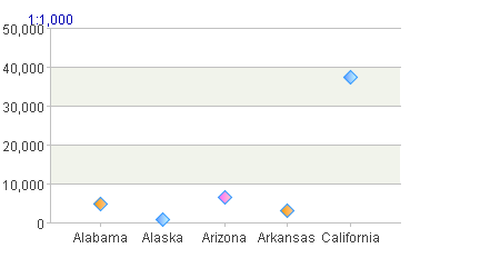 从图中可以看到,点的外观按照设定发生了改变。使用Marker weight属性可以设定绘制的点半径的像素数。如果需要点的尺寸与逻辑值对应,那么可以设定Radius 1和Radius 2属性,它们分别对应数据属性中设定的逻辑轴Axis 1和Axis 2,将由设定的逻辑值分别计算出点的宽度和高度。