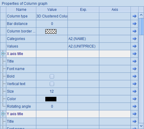 柱形图是最常用的图形之一,在集算器中,可以使用Column graph来绘制柱形图。如下面的画法:
