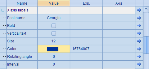 标签的字体属性与标题类似,不过多了一个Interval属性,可以使得标签间隔显示。