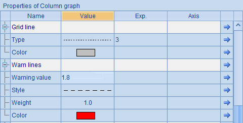 在数值轴纵轴上,还可以绘制网格线与警戒线,其中网格线是根据刻度的位置绘制的参考线,警戒线则会在指定警戒值的位置绘制。如继续修改柱形图的绘图参数如下: