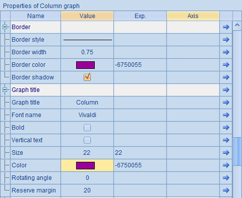 此外,还可以修改Border属性,改变统计图外围的边框;或者修改Graph title属性,在统计图上方绘制标题。如继续修改A3中柱形图的绘制属性如下:
