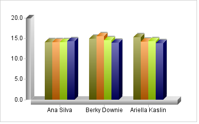 使用柱形图,也可以绘制多系列柱图,如下面的体操成绩柱图: