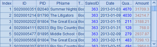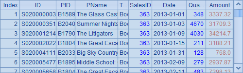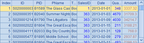 A3中,修改了A1中的序表,修改了其中第3条记录,将其SalesID字段变为1。此时再次查看A1中的序表,可以发现第3条记录已经被修改: