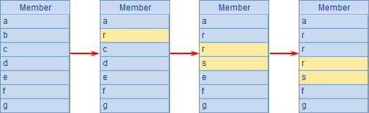 A2将A1中的第2个成员修改为r,A3继续修改A1中的第3、第4个成员。A4从第4个成员起继续依次修改,该表达式等价于>A1([4,5])=["r","s"],逐步运行时A1中序列的变化如下: