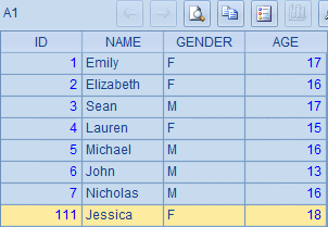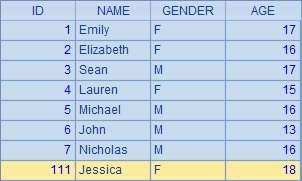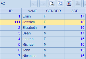 >A1.insert(0,111,"Jessica","F",18) |