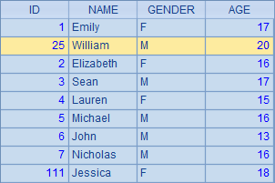 >A1.insert(2,25:ID,"William":NAME,20:AGE,"M":GENDER) |