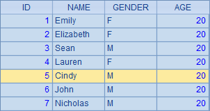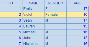 下面的网格中,先将第2条记录的GENDER字段修改为Female,NAME字段修改为Violet;再讲第2条起的连续3条记录的ID加10: