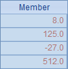 A2函数中没有循环表达式,直接返回A1中的序表,A3中计算序号的平方值构成的序列, A4中计算成员的立方构成的序列。A1,A2,A3,A4中的数据如下: