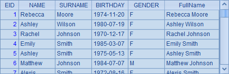 =A1.derive(NAME+" "+SURNAME:FullName).new(EID,FullName,GENDER, BIRTHDAY) |