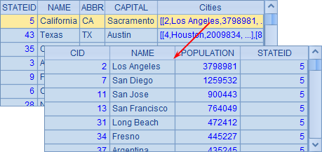 =A2.derive(A1.select(STATEID==A2.STATEID):Cities) |