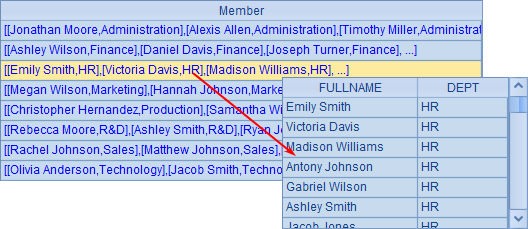 =A1.new(NAME+" "+SURNAME: FULLNAME, DEPT).group(DEPT) |