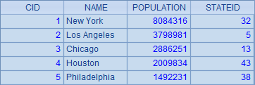 其中ID为主键,特别的,POPULATION设定了限制,要求其中的数据>1,000,000。