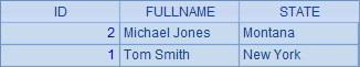 >demo.execute("update TEST set STATE='New York' where ID=1") |