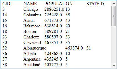 $(demo) select * from CITIES |