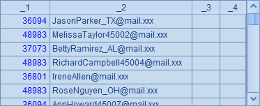 在A1中,将文本文件读为游标。在A2中每次读取5000*3条记录,并在语句块中将数据合并。其中,在每3条记录中,B2取出第1条记录构成排列,C2取出第2条记录构成排列,D2取出第3条记录构成排列。B2,C2和D2在最后一次循环中获取的数据分别如下: