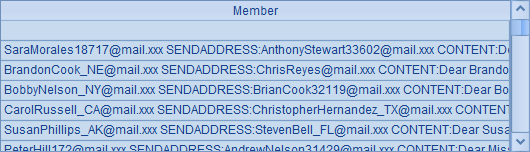 文档中,简单存储了一些邮件的内容,包括收件人地址,发件人地址及邮件正文,分别用RECIPIENT:,SENDADDRESS:和CONTENT:作为开头。其中,邮件正文的行数是不定的,因此这样的数据无法读出指定行数的数据合并处理,更无法直接使用。在集算器中,同样可以使用跨网游标,先在readMail.dfx中处理数据: