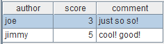 "score" : 5, "comment" : "cool! good!"