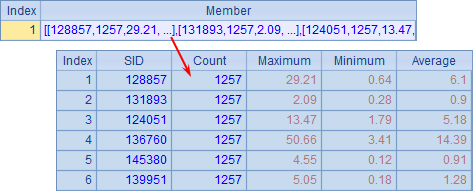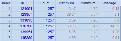=A3.new(A2(#):SID,~(1):Count,~(2):Maximum,~(3):Minimum,~(4):Average) |
