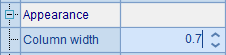 除了基本宽度外,柱图的宽度还会受到柱图元本身属性的影响。柱图元外观属性中,Columnwidth属性的影响。柱子宽度的属性值表示柱宽占基本宽度的比例,等于1时即为基本宽度。默认情况下,Column width属性为0.9,即柱宽与基本宽度的比例为0.9,从前面的绘图结果中可以看到,此时同一簇的各个柱子并不会紧密相连。如果修改绘图属性如下: