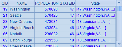 =A2.derive(A1.select(STATEID==A2.STATEID):Cities) |