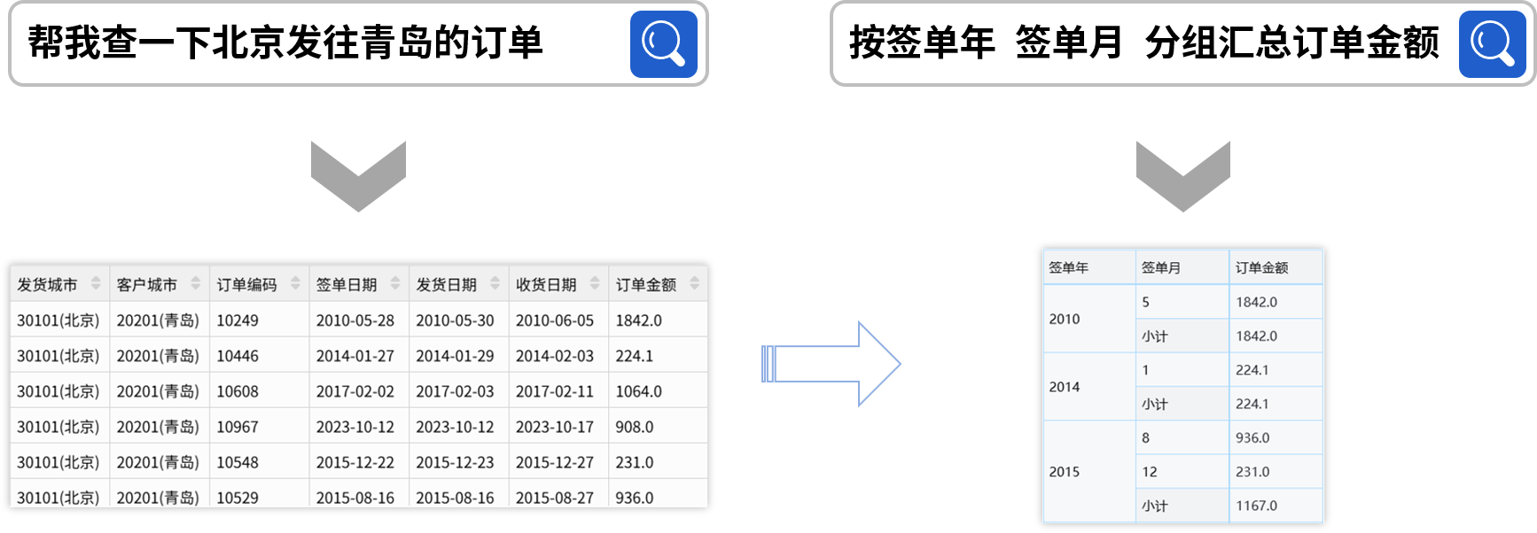 • 示例:定义动词“发往”,将其左侧关联到“发货”簇,右侧关联到“收货”簇。 • 应用:用户查询“北京 发往 青岛 的订单”,被解析为发货城市=北京 AND 收货城市=青岛。 |