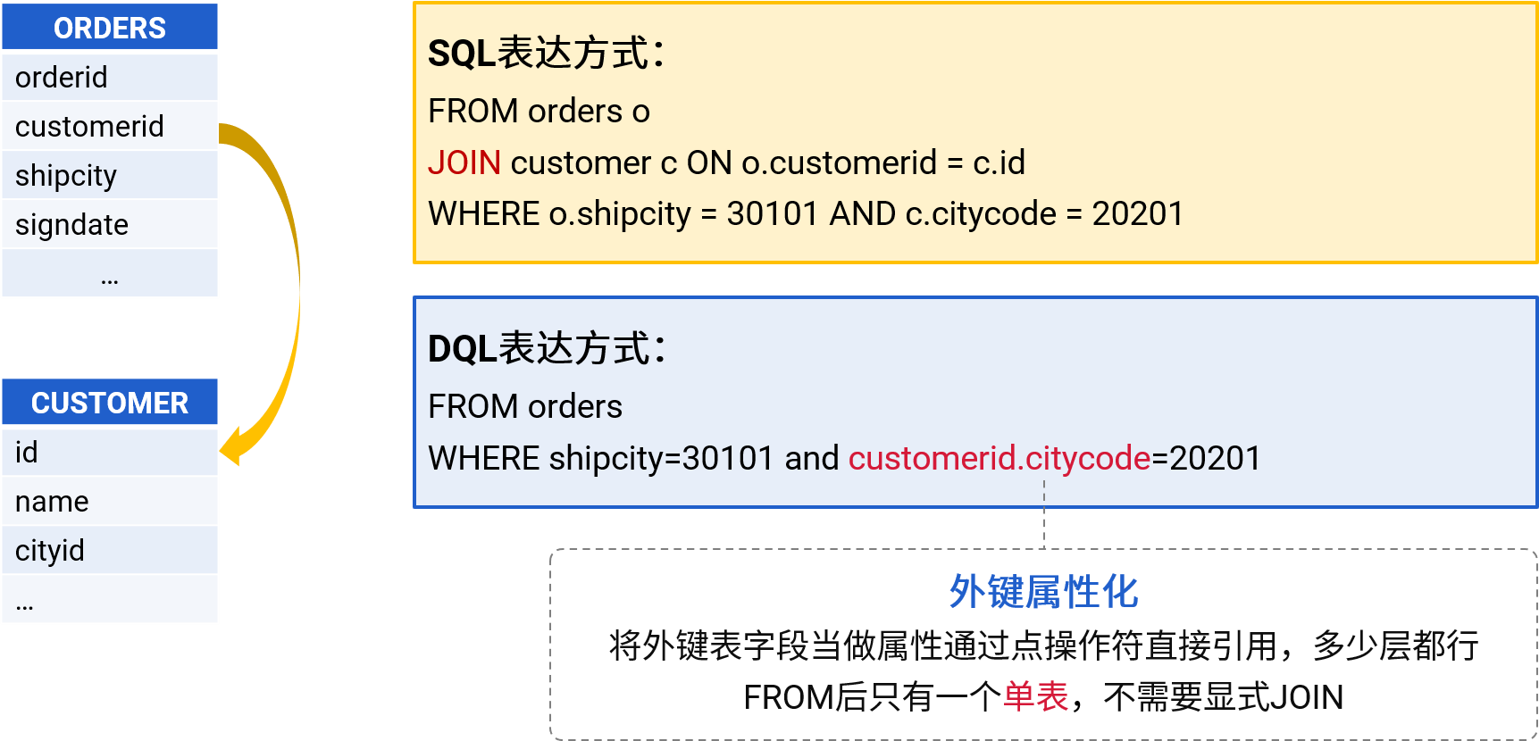 SELECT shipcity, customerid.citycode,orderid,customerid,signdate,shipdate,receivedate,amount FROM orders WHERE shipcity=30101 and customerid.citycode=20201