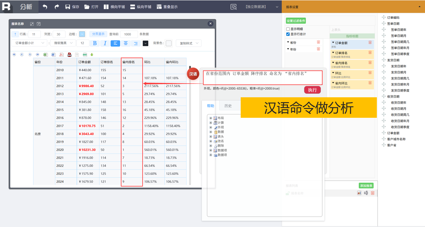 汉语命令可以完成所有多维分析操作