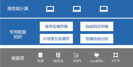 集算器针对内存、外存、集群都设计有专用高效数据组织方案,适应于多种运算场景